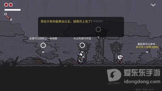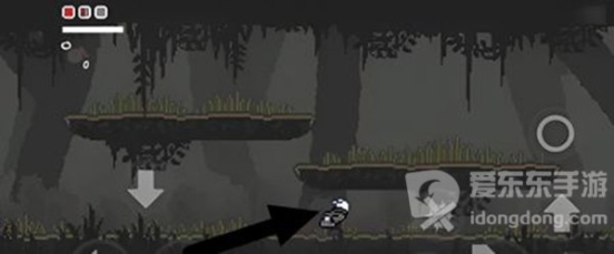2、如圖,墻面破洞,點一下O鍵是可以進去的。進去之后會拿到個飾品(皇冠)飾品后面可以穿戴(皇冠的作用是增加游戲難度,你只有一格血,但會有特效),地面上會有個月喜雕像,貼近雕像按鍵,可以將雕像放回柱子上,然后三個柱子上出現(xiàn)血球(每湊齊三個可以多一顆血),收集完就可以回如圖所示位置按O鍵返回