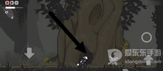 4、接著往前走,如圖,大樹下有個樹洞,點擊【圓形】按鈕,就可以進入卡茲村了