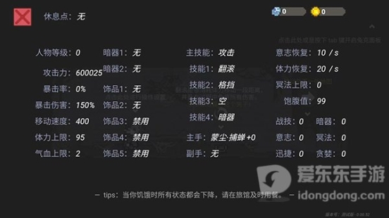 6、設(shè)置好操作環(huán)境和熟悉好基礎(chǔ)操作后,點擊右上角【三角形】圖標(biāo)即可開啟圖克面板,查看詳細的角色屬性